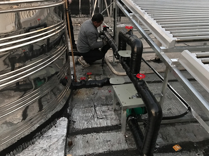 工程設(shè)備:太陽能集熱模塊,輔助加熱,不銹鋼保溫水箱